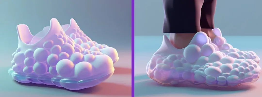 △这是一双由计算设计的鞋子(以气泡作为创意)