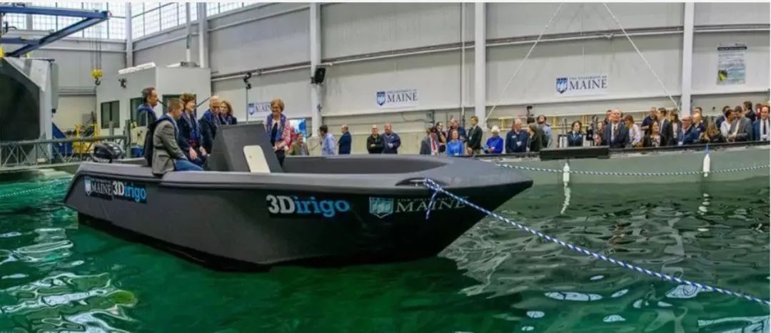 今年3月,缅因大学(UMaine)在其位于奥罗诺的先进结构和复合材料中心3D打印了两艘新的大型船只,其中一艘据说是有史以来最大的增材制造船只。据了解,这两艘原型船是为美国海军陆战队开发的,被设计为后勤支援船,并将进行测试,供武装部队实地使用。其中较大的一艘可以装载两个20英尺的运输集装箱,而另一艘可以运送整个步枪班的食物、水和其他物资,为期三天。这两艘新船都是基于聚合物的纤维增强复合材料的多材料混合物3D打印的。根据UMaine的说法,它能够在短短一个月内制造和组装其中一艘船。如果使用传统的制造方法,这一过程将会长达一年。